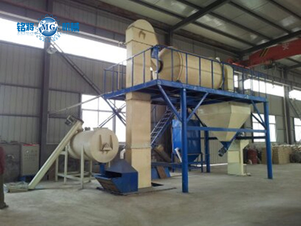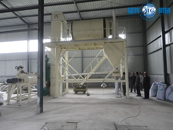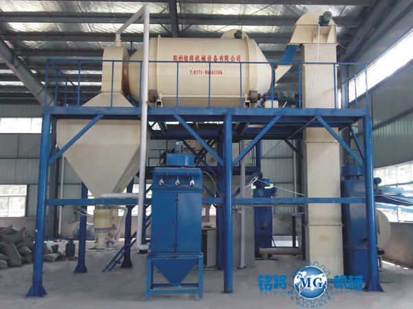 該生產(chǎn)線由臥式螺帶混合機(jī)、斗式提升機(jī)、;⒅闈L筒混合機(jī)、自動(dòng)包裝機(jī)和除塵設(shè)備組成。該套生產(chǎn)線先將填充物料通過(guò)臥式螺帶混合機(jī)進(jìn)行預(yù)混,然后再與;⒅樵跐L筒混合機(jī)中進(jìn)行混合,既減小玻化微珠的破損又使物料得到充分的混合,保證產(chǎn)品的質(zhì)量。另外該套設(shè)備配備一到兩臺(tái)脈沖式除塵器大大改善工作環(huán)境,減少粉塵對(duì)人體的傷害是做無(wú)機(jī)保溫建材中小型企業(yè)的理想產(chǎn)品。