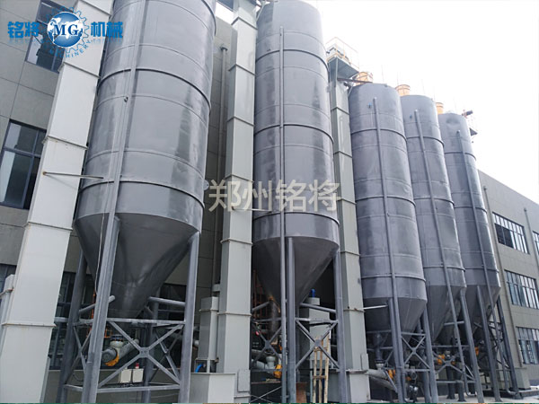 蘇州鴻川建筑材料有限公司全自動(dòng)干粉砂漿生產(chǎn)線、自動(dòng)包裝輸送碼垛生產(chǎn)線由鄭州銘將承建。本套生產(chǎn)線與其它生產(chǎn)線不同的是采用了氣體輸送,另外增添了自動(dòng)輸送和碼垛系統(tǒng)。